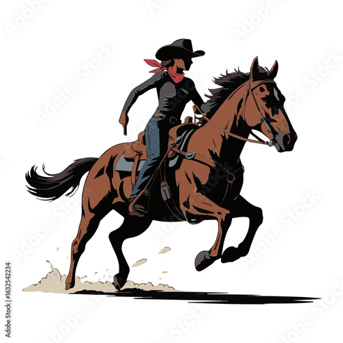Vector illustration of Cowgirl riding horse in action isolated