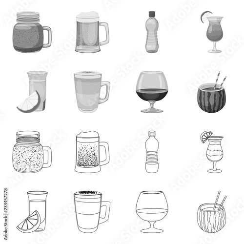 Vector illustration of drink and bar icon. Set of drink and party stock vector illustration.