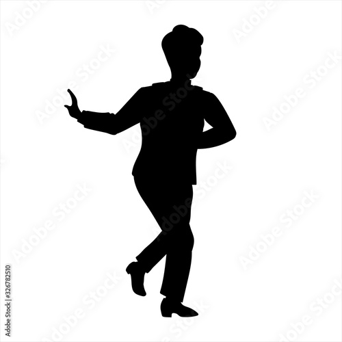 Vector Illustration of man silhouette in the style of the 1920s in charleston or lindy-hop dance pose. Isolated hand-drawn character on a white background