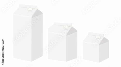 Vector Illustration of Milk box isometric view, Different Sizes: 500ml,750ml,1L. Milk Carton Box Mock-up, White clear empty box