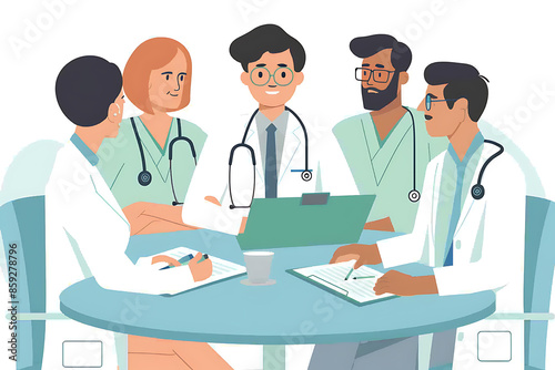 Vector IllustrationDoctors, Nurses, and Teamwork on Tablet for Hospital Management Data Report, Supporting Black Patients, Clinic Results, Research, Healthcare