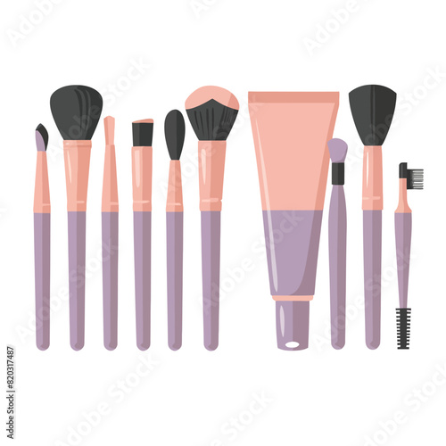 vector illustrations for collection brushes for beauty accessories with different colors