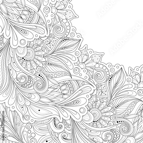 vector, abstract, flower, leaf, batik, chic, style, paisley, garden, hand-drawn, doodle, pattern, bloom, blossom, tree branch, bouquet, flora, summer, spring, herb, grass, feminine, nature, background, cover page, turkish, chinese, indian, ornate, art deco, outline, contour, banner, postcard, greeting card, layout, template, floral, vintage, label, wedding, adult, monochrome, black-and-white