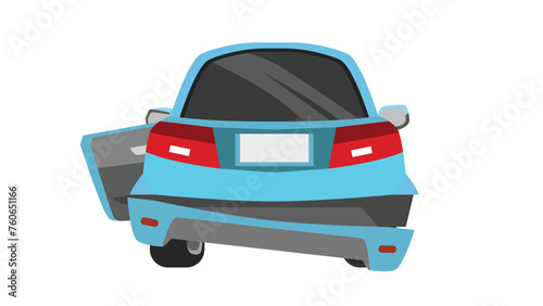Vector or illustration in flat style of car. Back skirt is broken. side door open. Isolated on white background.