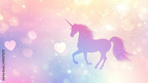 Vector pastel unicorn background with hearts, circles, bokeh, and stars, perfect for a sweet, magical design.