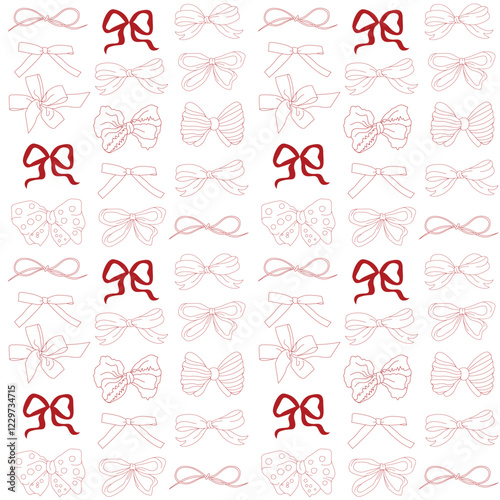 pattern, vector, seamless, bow, red, set, illustration, design, art, valentine, collection, hand-drawn, line, ribbon, congratulation, present, gift, textile, background, fabric