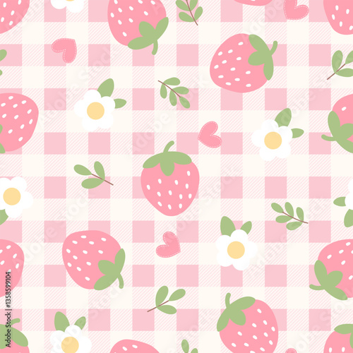 vector seamless pattern with fruits, flower, leaf and check plaid background vector