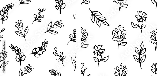 Vector seamless pattern with hand drawn herbs and flowers on white background