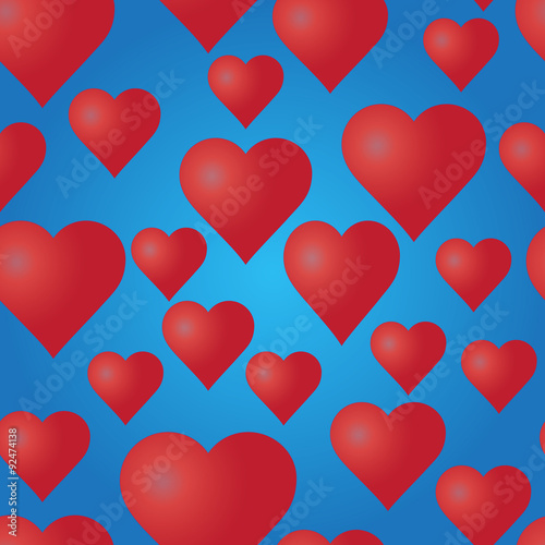 Vector seamless pattern with red hearts on the blue background. Wedding or Valentine's Day texture. Love template. Romantic backdrop.