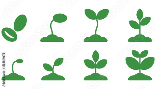 Vector set of green plant and leaf icons for nature, growth, and ecology design