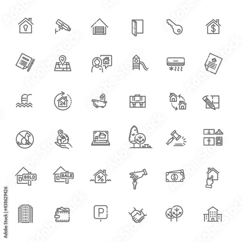 vector, outline, real estate, mortgage, sale, thin, line, icon, line, real, home, building, set, rent, signs, symbol, luxury home, delivery, handshake, apartment, plate, property, estate, garage, design, house, bedchamber, residential, agent, architecture, lease, filled, sell, industrial, icon, service, elevator, office, financial, finance, advertisement, agreements, logistic, exchange, construction, congratulating, choose, broker