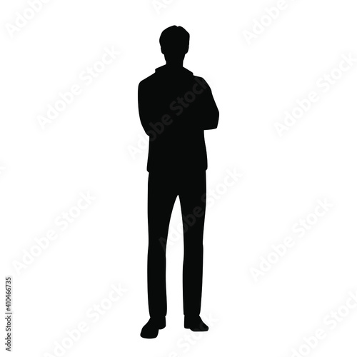 Vector silhouette of a man standing, businessman, black color, isolated on a white background
