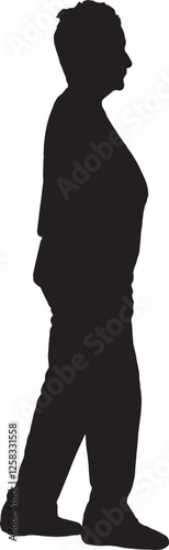 vector; silhouette; side view of a senior woman walking