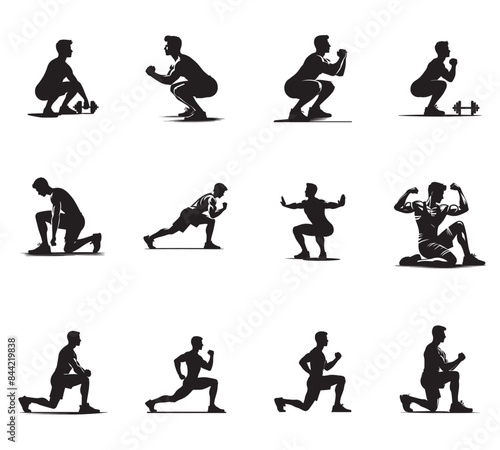 Vector silhouettes of GYM Set, a man doing Exercise