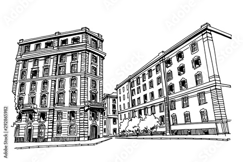 Vector sketch of street scene in Rome, Italy.