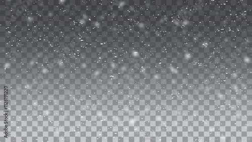 Vector snowfall isolated. Winter background. Snow overlay illustration. Snowflakes and ice.