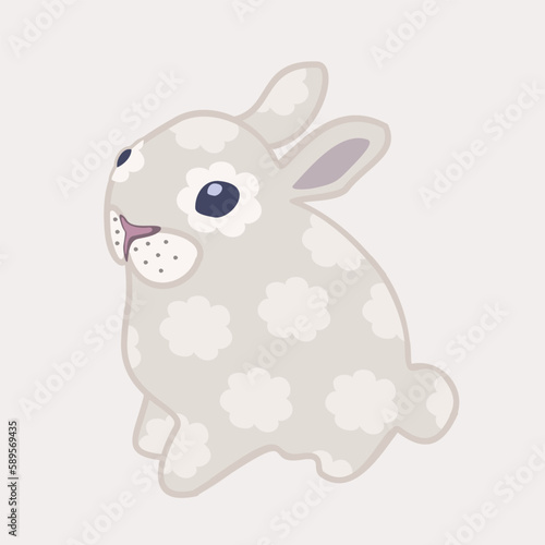Vector soft pastel illustration of rabbit in flowers. Isolated on light background.