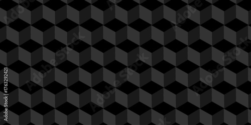 Vector structure box minimal black abstract cube square geometric tile hexagon mosaic wall grid wallpaper. black and gray geometric block cube isometric mosaic texture background.