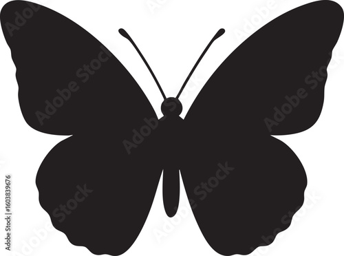 Vector Symmetrical Butterfly Silhouette with Solid Black Wings and Clean Design on White