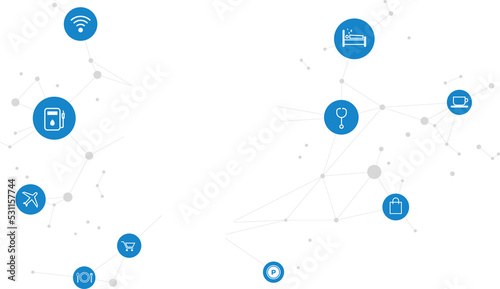 Vector Travel Network Pin mark polygon dot connected line: concept of travel route, location, journey