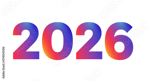 Vector typography “2026” in bold, modern font, filled with colorful gradient rainbow tones, isolated on white background