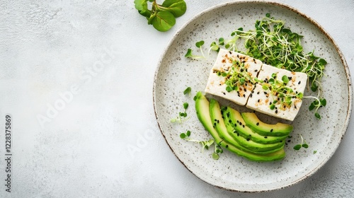 Vegan Delight: Sesame Tofu with Avocado and Microgreens
