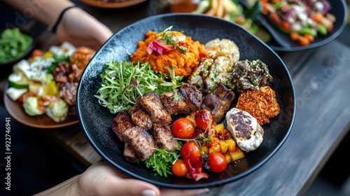 Vegan gourmet, colorful plates, creative cuisine, sustainable eating