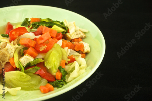 vegetable, vegetarian, boiled, tofu, cabbage, capsicum, carrot, green, black, red
