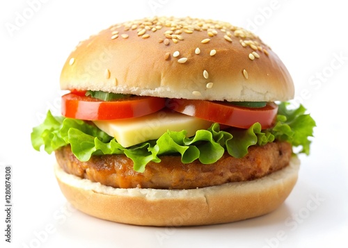 veggie burger with sauce isolated on a white background