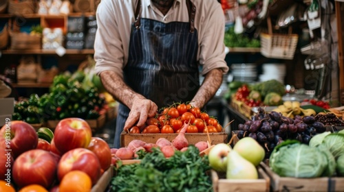 Vendor arranging fresh tomatoes at a local market