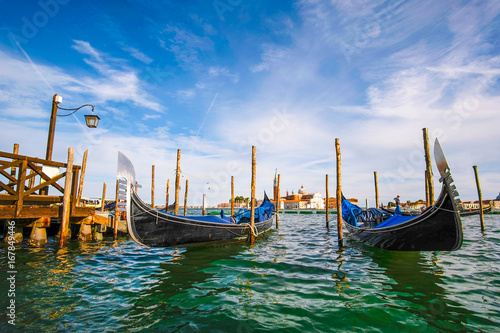 Venice, Italy - July, 28, 2017: gondola on a Channel in Venice, Italy