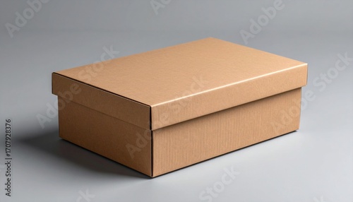 Versatile brown cardboard box with a secure lid for packaging, shipping, or storage, presented against a clean, neutral grey studio background, ideal for product display and logistics