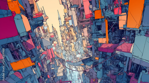Vertical Cities Urban colorful illustration