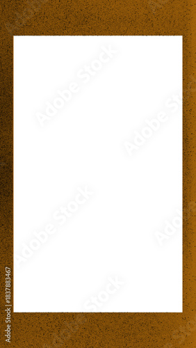 Vertical rectangular frame with textured brown border and white center isolated on transparent background