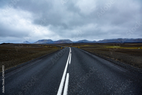 Very picturesque empty road in iceland in summer. Asphalt road as a symbol of freedom and travel.