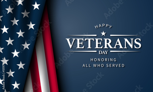 Veterans Day Design with realistic United States flag for Banner, Poster or Greeting Card.