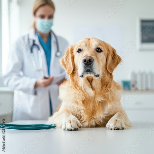 Veterinarian Examines Golden Retriever in Clinic Setting