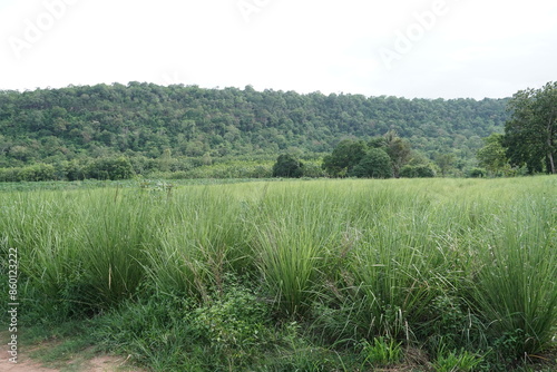 Vetiver grass is grown in the orchard.
