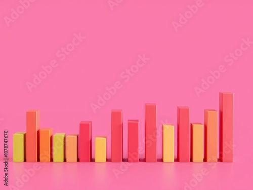 Vibrant 3d graph displaying different colored bars over pink backdrop, financial, chart