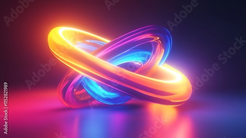 Vibrant 3D Render: Intertwined Neon Rings Glowing Mysteriously in Dark Space. AI Generated