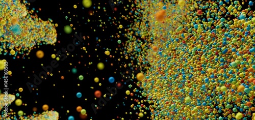 Vibrant 3D render of colorful spheres exploding. Perfect for backgrounds, presentations, and more!