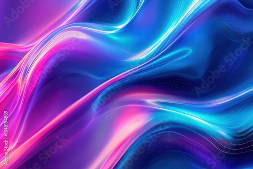 Vibrant abstract background with smooth, flowing iridescent waves of pink, blue, and purple, creating futuristic, dynamic visual.
