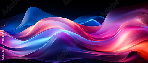Vibrant abstract color wave on black: Dynamic hues, clear and bright, with a glossy finish. Abstract orange blue azure pink purple lilac dark gradient background. Banner, wallpaper, template, desktop