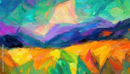 Vibrant Abstract Expression of Modern Impressionism Bold Colors, Swirling Textures and Geometric Shapes in a Captivating Poster Print