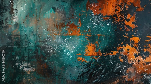 Vibrant Abstract Expressionist Painting with Teal and Burnt Orange Colors - Dynamic Texture, Splatter Art, and . Generative AI