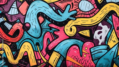 Vibrant Abstract Graffiti Inspired Doodle Background with Bold Strokes and Urban Energy