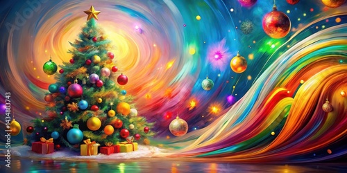 Vibrant abstract holiday scene with swirling colors and dynamic movement, modern style, expressive brushstrokes