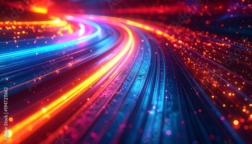 Vibrant abstract light trails suggesting speed and digital connection on a dark background.
