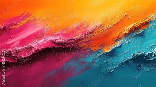 Vibrant Abstract Painting with Textured Strokes of Pink, Orange,