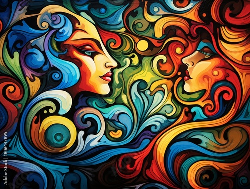 Vibrant abstract portrait with swirling colors